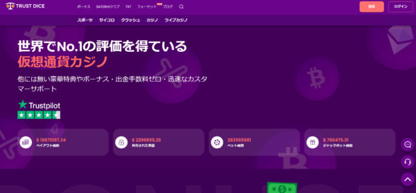 トラストダイス(TrustDice)は2018年に設立された仮想通貨特化型のオンラインカジノ&スポーツベッティングサイトです。 Satoshi Gaming Group N.V.がキュラソーで運営しており、独自のTXTトークンマイニングやフォーセット機能など、他のカジノにはないユニークな特徴を持っています。
