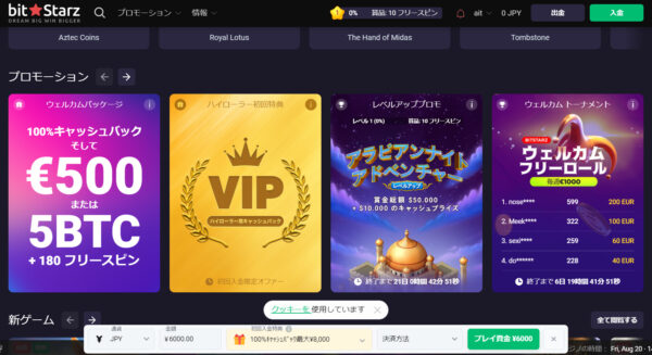 ビットスターズ(BitStarz)は、仮想通貨対応のオンラインカジノとして世界的に高い評価を受けており、入金不要の50フリースピンや最大$500/5BTC + 180FSのウェルカムボーナスなど、 充実したボーナスプログラムを提供しています。
