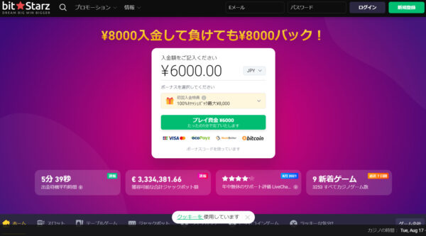 日本語サポート:ビットスターズでは24時間365日、ライブチャットで日本語サポートを利用できます。 登録に関して不明な点があれば、気軽にサポートに問い合わせてください。