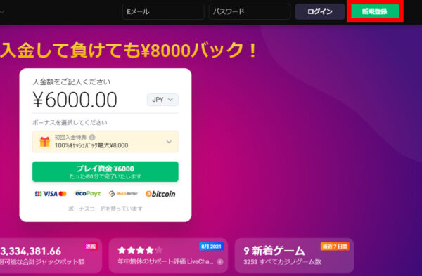 はい、日本からアクセス・登録が可能です。サイトは日本語に対応しており、24時間365日ライブチャットで日本語サポートを受けることもできます。