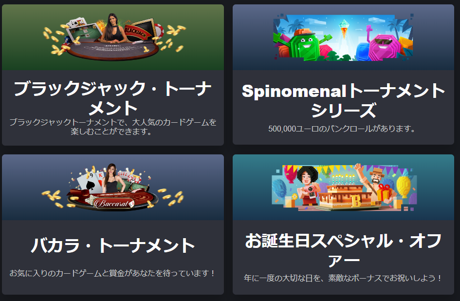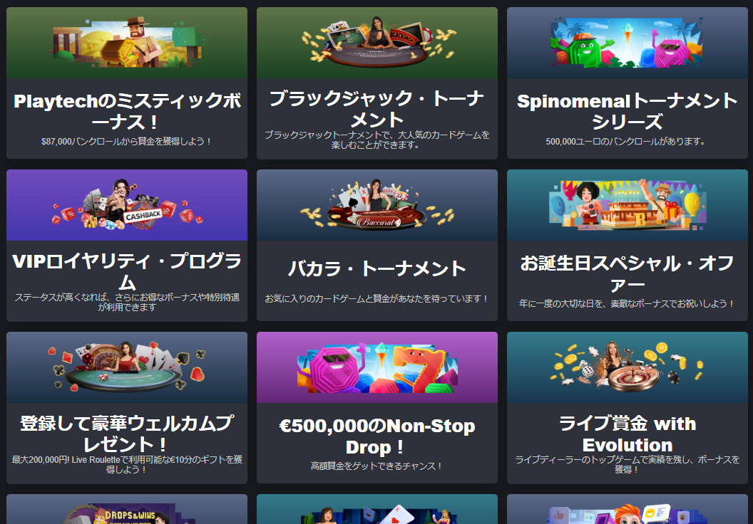ボンズカジノでは、入金ボーナス以外にも様々なプロモーションを一年中開催しています。