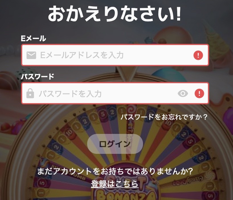 登録済みのメールアドレスとパスワードを入力して「ログイン」をクリックします。