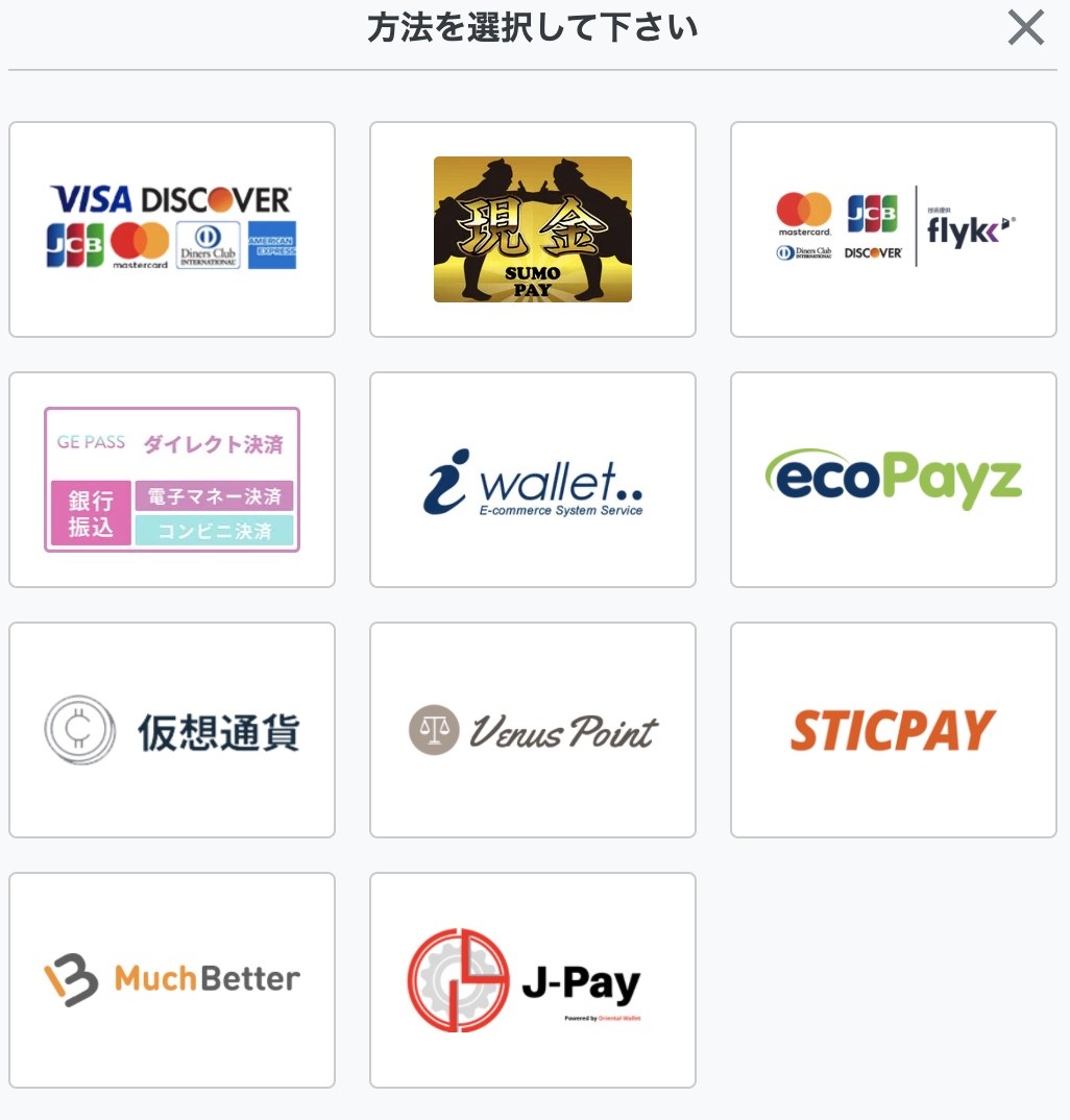カジノミーでは7種類の入金方法に対応しています。各入金方法の手数料・限度額・反映時間を一覧で確認しましょう。