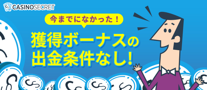 カジノシークレットに新規登録するだけで、$50の入金不要ボーナスがもらえます。入金なしでカジノゲームを試すことができます。