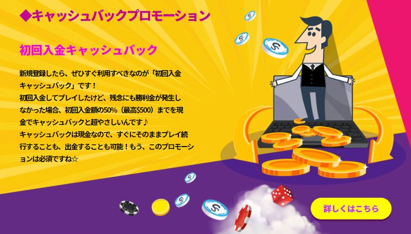 | ジャンル | オンラインカジノ(キャッシュバック型) |