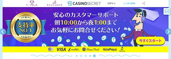 カジノシークレットは、クレジットカードや銀行送金など日本人が使いやすい決済方法に幅広く対応しています。