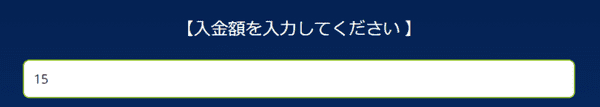 アメリカドル建てで入金希望額を入力します。最低入金額は$15です。クレジットカードで入金する場合は$2,500以下を入力してください。