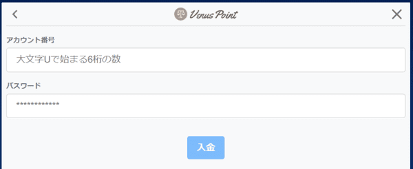 入金画面を開く