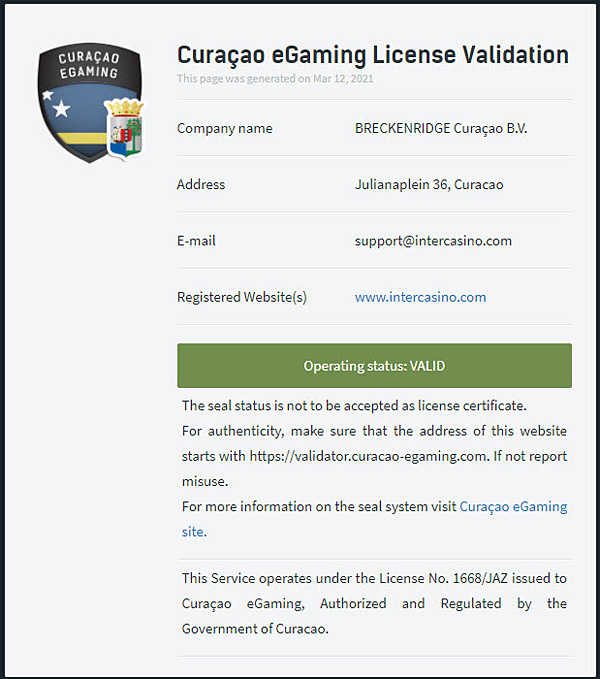 カジ旅は、オランダ領キュラソー政府が発行するキュラソーライセンス(No. 8048/JAZ)を取得して運営されています。 キュラソーライセンスは世界中の多くのオンラインカジノが取得しており、信頼性の高いライセンスの一つです。