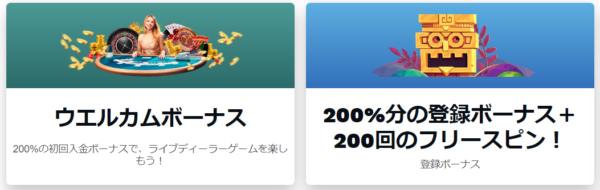 さらに初回入金時には、100%最大$2,000+フリースピン200回のウェルカムボーナスも用意されています。入金額と同額のボーナスを受け取ることができます。