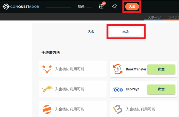 コンクエスタドールの出金方法のポイントをまとめます。
