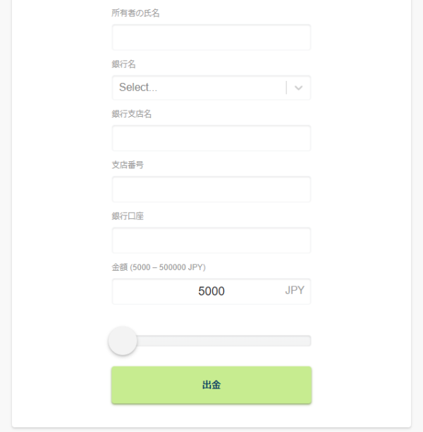 出金額と出金先の情報を入力し、「出金する」をクリックして完了です。 電子決済の場合は1時間以内、仮想通貨は即時〜24時間、銀行送金の場合は1〜3営業日で処理されます。
