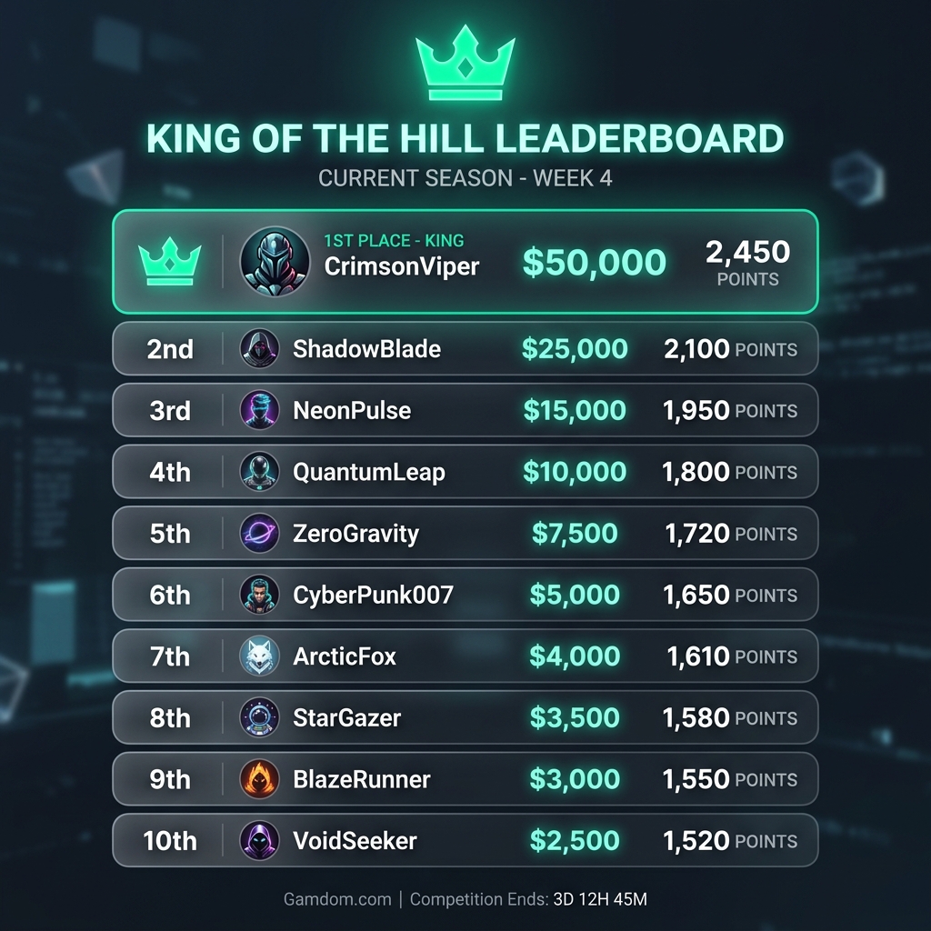 King of the Hillは、プレイ金額に応じたリーダーボード形式の報酬システムです。