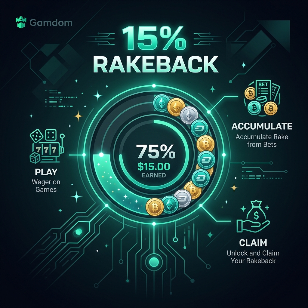従来型の入金マッチボーナスはありません。代わりに新規登録後7日間、15%のレーキバックが適用されます。賭け条件なし・即出金可能なので、実質的にはボーナスより有利です。