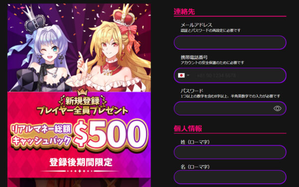 | サポート | ライブチャット 11:00〜翌02:00(365日)・メール(日本語対応) |