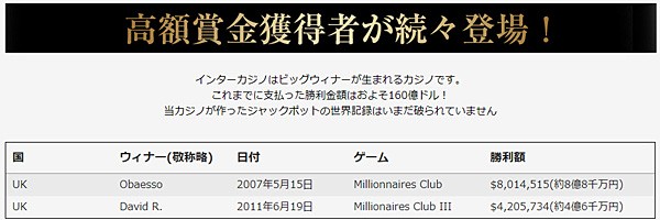 評判の詳細はインターカジノの評判・口コミページをご確認ください。