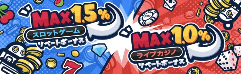 | スロットリベート | 0.5%〜1.5% | 1倍 |