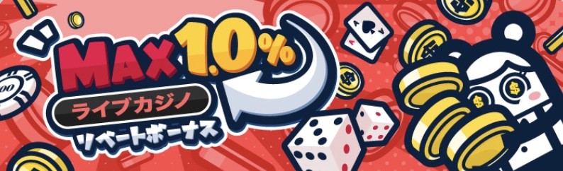 | ライブカジノリベート | 0.3%〜1.0% | 1倍 |