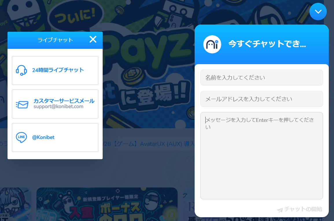 | ゲーム | スロット・ライブカジノ・テーブルゲーム・スポーツベット |