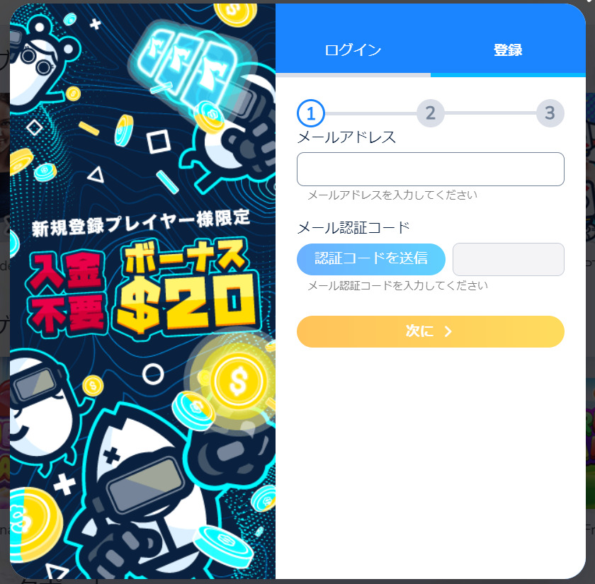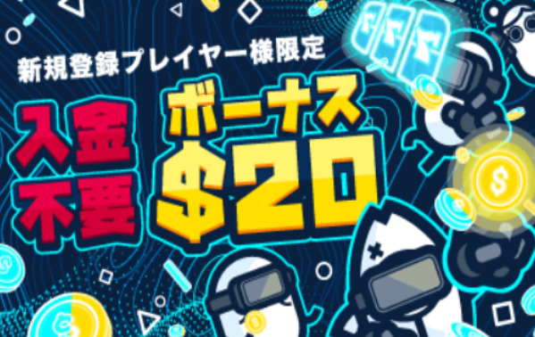 | 登録ボーナス | $20 入金不要ボーナス(賭け条件5倍) |