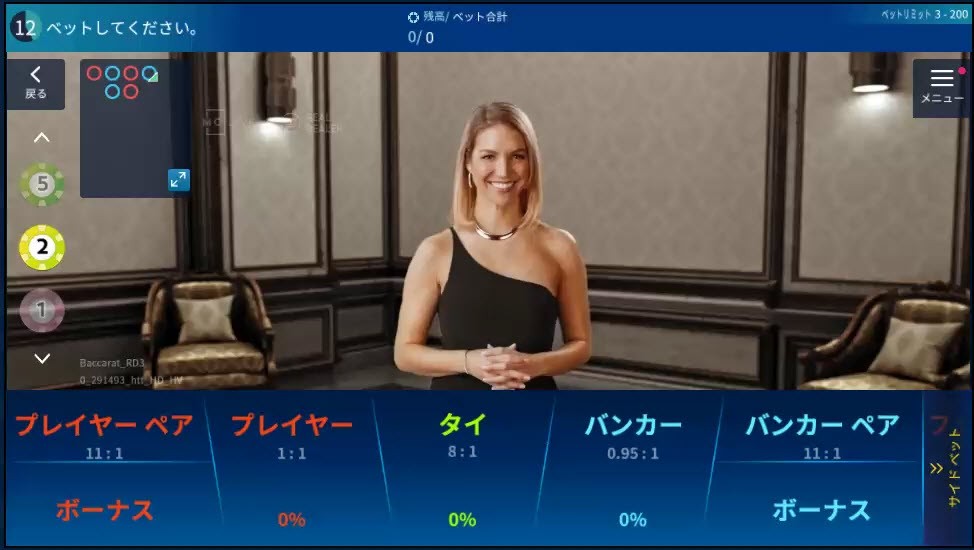 Allbetのライブカジノルームでは、マルチベット機能やロードマップ表示など、 バカラプレイヤーに嬉しい機能が充実しています。
