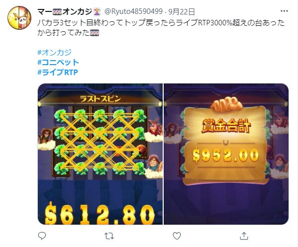 実際にライブRTPを活用してプレイした結果の例です。高RTPのスロットを選ぶことで、 効率的にプレイできます。