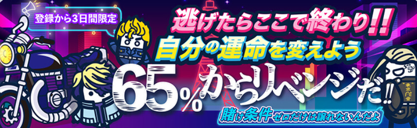 当サイト経由で新規登録するだけで、$20の入金不要ボーナスを獲得できます。さらに初回入金では最大65%のキャッシュバックが受けられます。