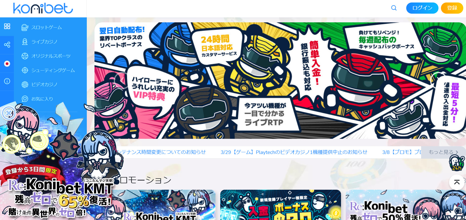 コニベット(Konibet)は、2019年11月に創業したオンラインカジノで、 最大65%のキャッシュバックやライブRTP機能、VIPプログラム降格なしなど、独自の強みを多数持っています。