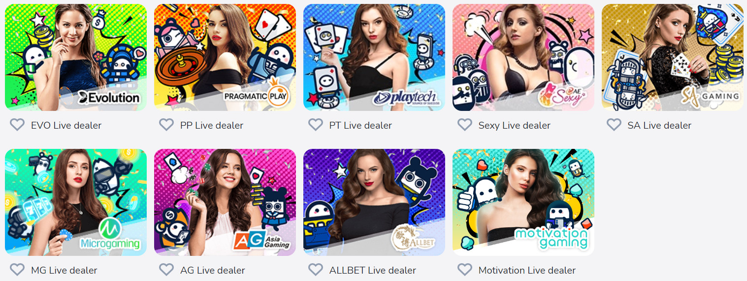 | ライブカジノルーム | 9種類(Evolution, Playtech, Sexy Gaming, SA Gaming, MicroGaming, Asia Gaming, Allbet, Pragmatic Play, Motivation Gaming) |