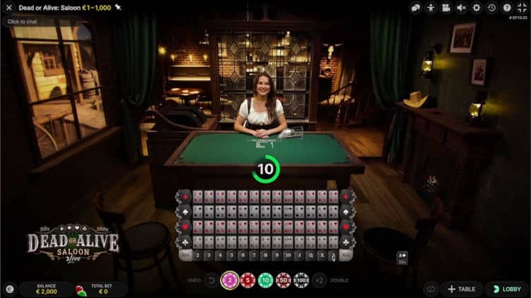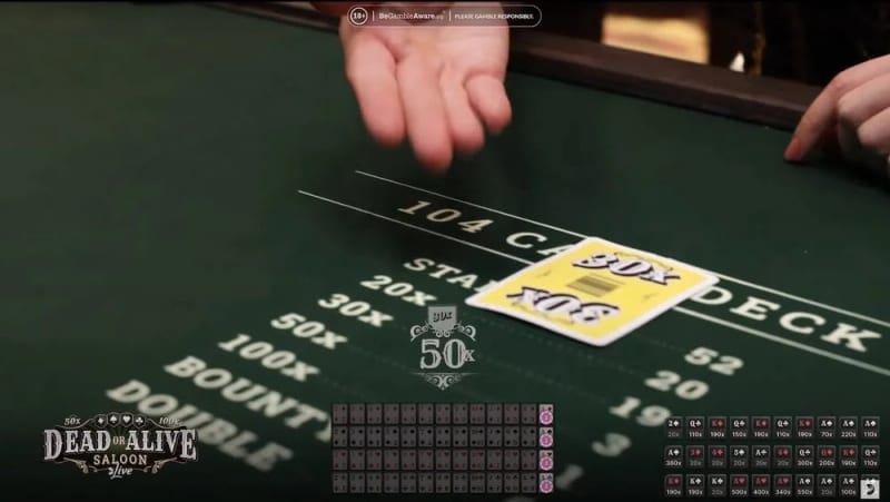 ライブカジノ特化。Dead or Alive: Saloon専用テーブルが常時稼働中。