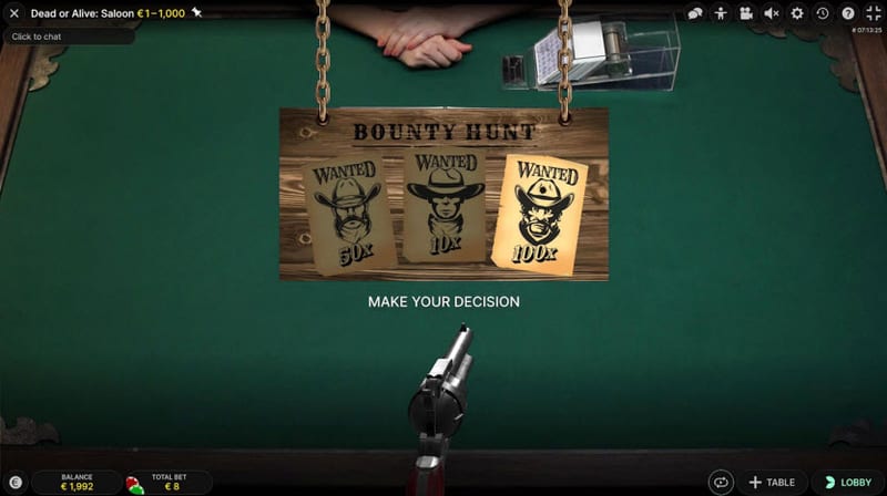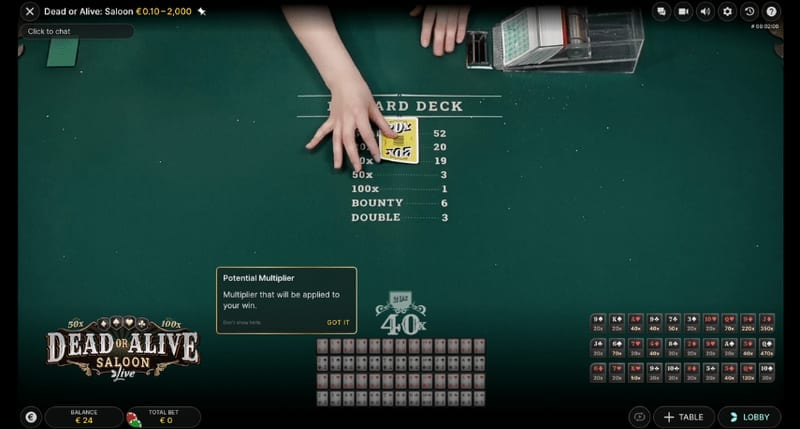 Dead or Alive: Saloonは、NetEntの伝説的スロット「Dead or Alive」シリーズの世界観をライブカジノに進化させた、Evolution Gaming 2024年の最新作です。
