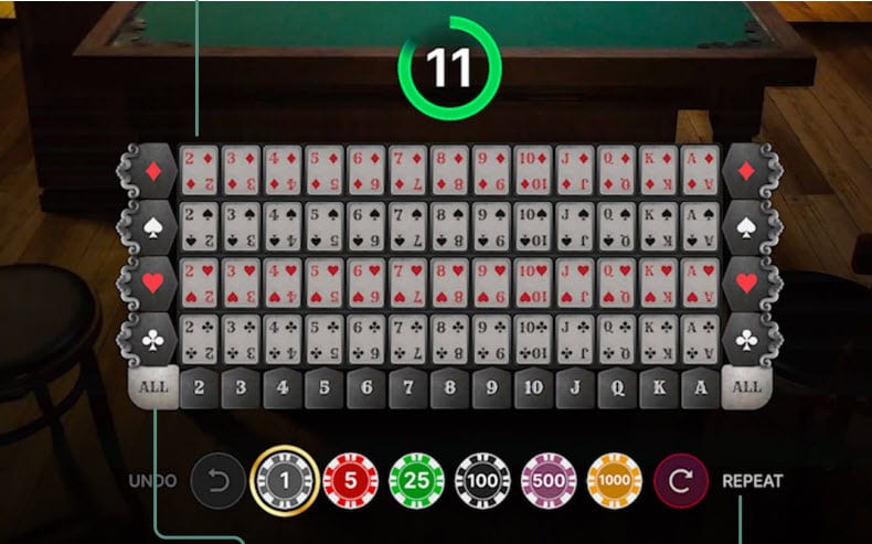 ポイント:プレイヤーは手札を持たず、結果のハンドを予想(ベット)するだけ。Side Bet Cityと同じ「予想ベット型」のシンプルな構造です。