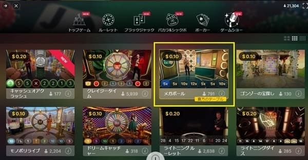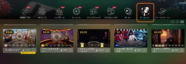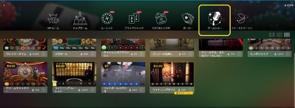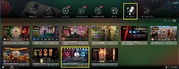 ライブゲームショーは全20種類。それぞれに特徴があるので、自分に合ったものを選びましょう。