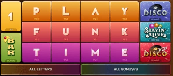 F-U-N-K-Y の文字が書かれたホイールが回ります。文字を集めると、それぞれにマルチプライヤーが付き、合計でかなりの配当が狙えます。