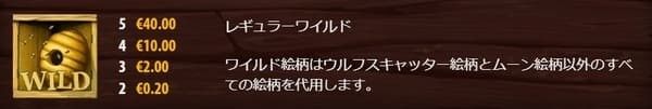 ビッグバッドウルフのシンボルは、童話のキャラクター(高配当)とトランプ記号(低配当)に分かれています。ワイルドの蜂の巣シンボルと月のスキャッターにも注目です。