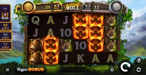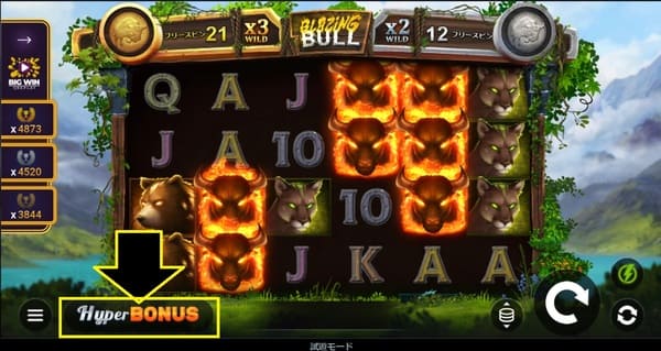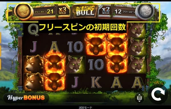 ブレイジングブルの大配当はフリースピンから生まれます。2種類のフリースピンとHyper Bonus購入の仕組みを解説します。