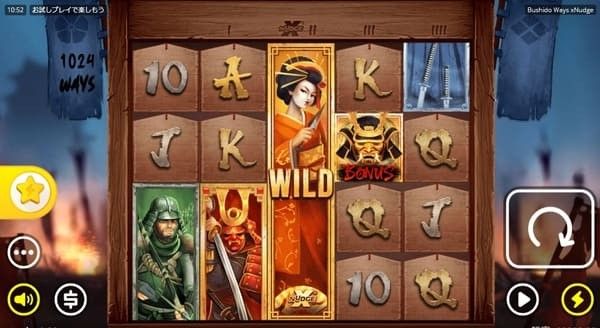 ボーナスシンボルと侍シンボルの同時出現で全シンボルが最高額に変換されます。これがxNudgeワイルドと組み合わさると、爆発的な配当になります。