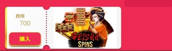 ゲイシャスピン(フリースピン)はベット額の約70倍で購入できます。例えば$1ベットの場合は約$70です。