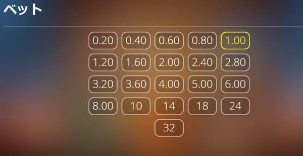 $0.20〜$32まで21段階のベット額から選択可能です。タップするだけで簡単に切り替えられます。