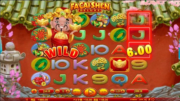 Deluxe版の最大配当は約2,880倍です。フリースピン中に高配当シンボルが揃い、財神ワイルドが絡むと大配当が実現します。