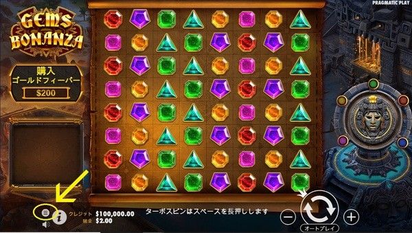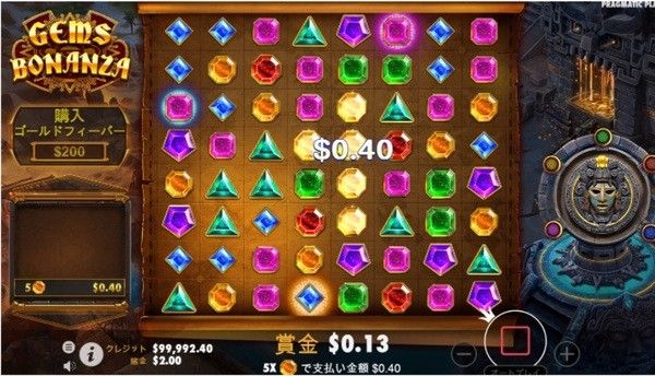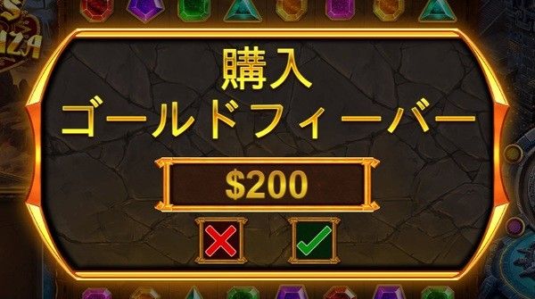 ベット額の100倍でゴールドフィーバーを直接購入できます。 例えば$2ベットの場合は$200で購入可能です。チャージメーター満タンを待たずに即座にボーナスモードへ突入できます。