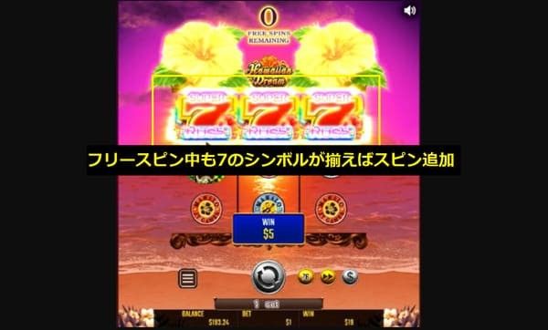 リスピンが連鎖するたびに期待感が高まり、パチスロの「連荘チャンス」と同じ興奮を味わえます。4連続リスピンでRUSHモードに突入するのが、ハワイアンドリームの基本的な流れです。