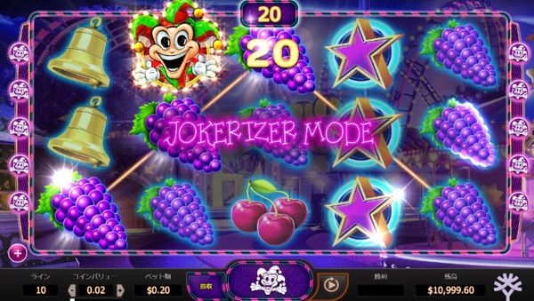 5リール×3段のリール構成で、10ペイラインのシンプルなスロットです。 通常モードで配当が成立すると、ジョーカライザーモードへの切り替えを選択でき、高配当テーブルでのプレイが可能になります。