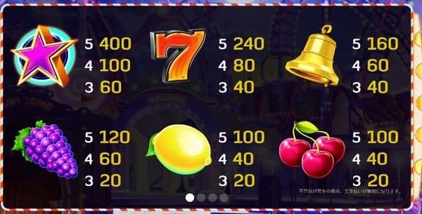 高配当シンボルはクラシックスロットでお馴染みの星・7・ベルです。5つ揃い時の配当は以下の通りです。