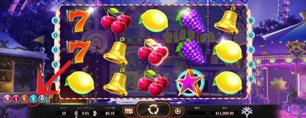 画面下部の矢印ボタンでベット額を調整します。 最小$0.10から最大$25まで設定可能です。 RTP98.00%の高還元率を活かすため、自分の資金に合わせて長くプレイできるベット額を設定しましょう。