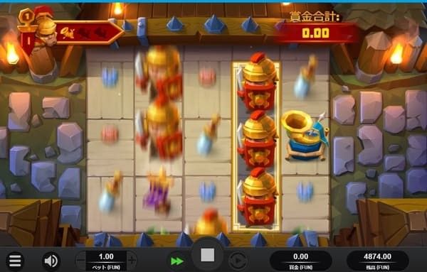 ローマ兵士のシンボルがリール上を右から左へ行進(マーチ)する機能です。行進中に配当が成立すると賞金に加算され、連続的な配当チャンスを生み出します。