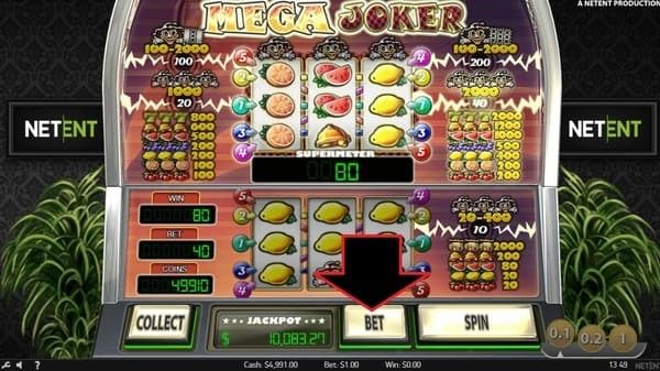 重要:RTP99.00%は最大ベット(ベット10×コインバリュー最大)でプレイした場合のみです。最小ベットではRTPが76.9%まで下がります。メガジョーカーをプレイする際は、必ず最大ベットに設定してください。