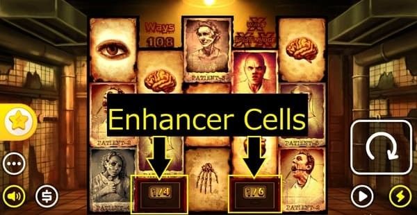 Enhancer Cellsは、リール下部に隠された特殊な行です。 ベースゲーム中は基本的に非活性ですが、フリースピン中に解放されます。 解放されたEnhancer Cellsには、xWays・xSplit・ワイルドなどの追加機能がランダムに出現し、通常のリールに加えて追加の恩恵をもたらします。 フリースピンの段階が上がるほど、Enhancer Cellsの効果も強力になります。