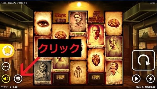 画面左下のメニューボタンから、配当表やゲームルールを確認できます。 メンタルはxMechanics3種やEnhancer Cellsなど複雑な機能を多数搭載しているため、初めてプレイする際は必ず配当表とルールを確認してください。