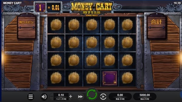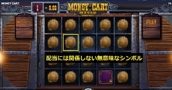 マネーカートには通常のスロットのような配当シンボルはありません。コインシンボルと干し草シンボルの2種類のみです。